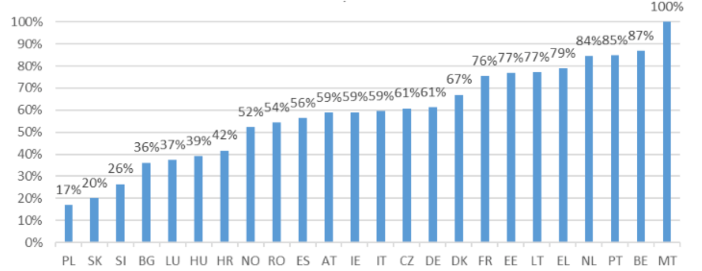 Source: Data collection study: Data for 3 Member States only covered some of the years: BE (based on 2018-2021 data), FR (based on 2019 and 2020 data), and RO (based on 2018-2020 data), Report on the application of Directive 2013/11/EU on alternative dispute resolution for consumer disputes, European Commission, 2023.
