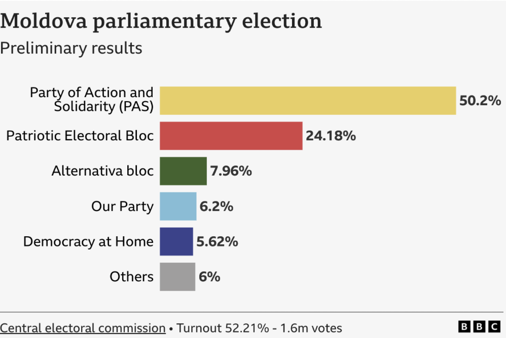 President Sandu’s PAS defeated the Patriotic Electoral Bloc in an election seen as vital by both Brussels and Moscow