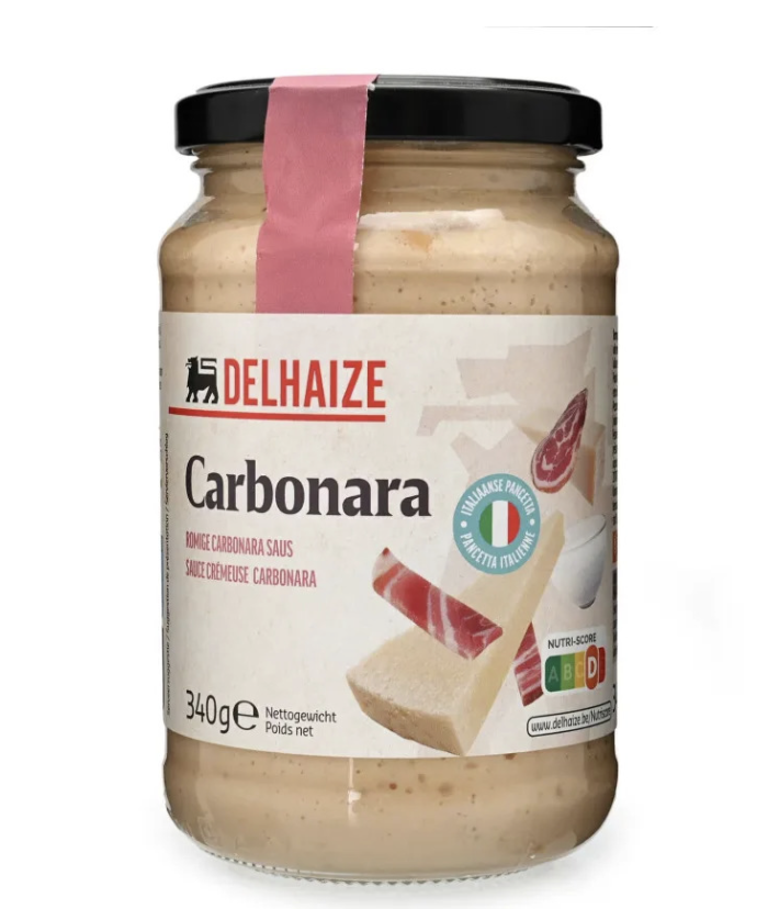 The jar of carbonara sauce made by Belgian company Delhaize- CNN ‘Fake’ carbonara sauce causes outrage in Italy | CNN