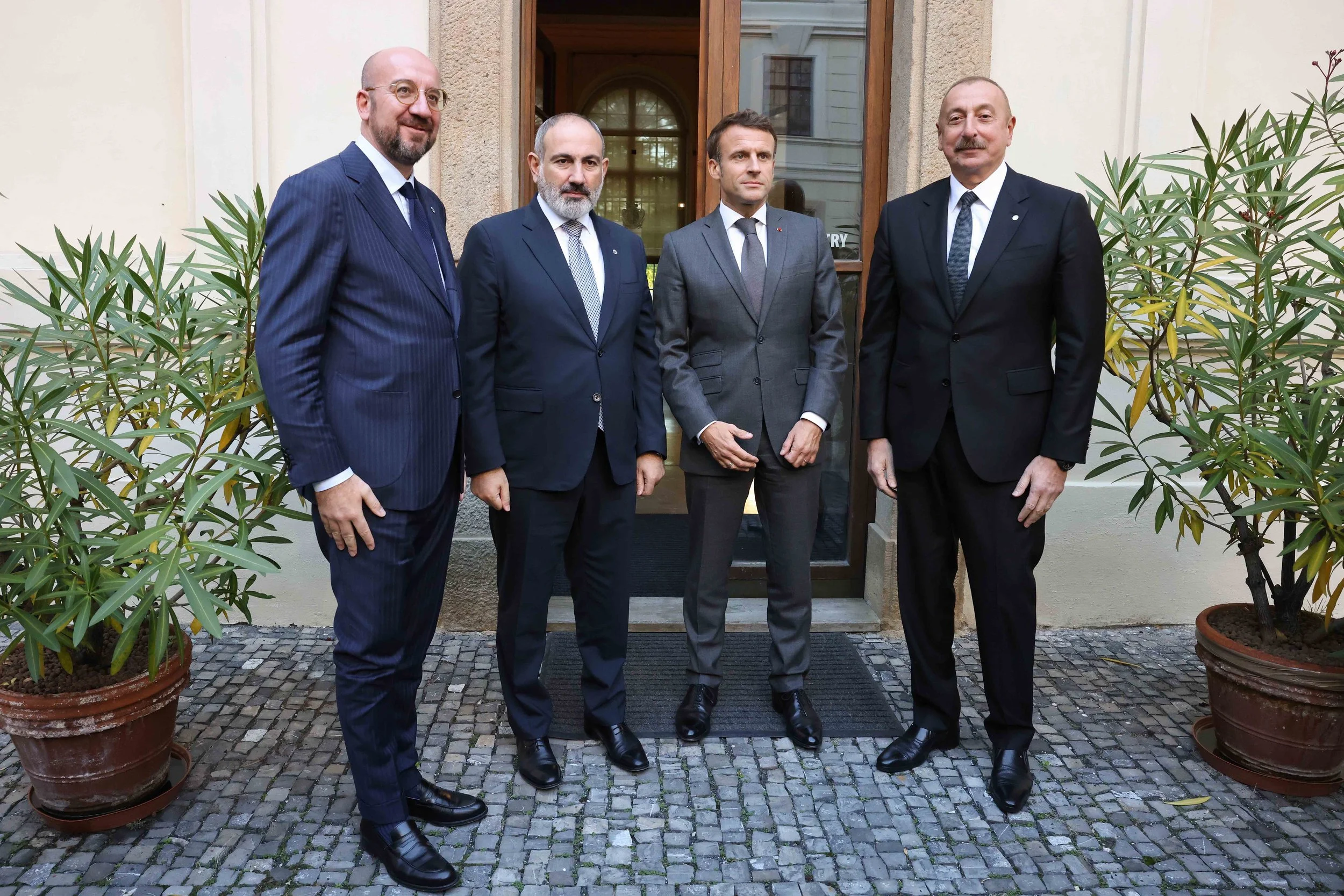 Copyright: European Union. From left to right: Ilham ALIYEV (President of the Republic of Azerbaijan), Charles MICHEL (President of the European Council), Nikol PASHINYAN (Prime Minister of the Republic of Armenia).